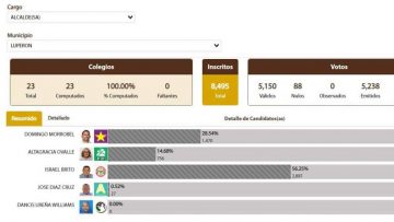 Mientras que Ovalle del partido opositor obtuvo 756 para un 14.86% y Díaz Cruz 27 votos con un 0.25%.