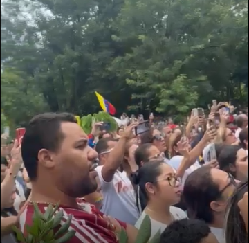 Con cánticos y oraciones, el grupo de venezolanos espera por el cierre de las mesas electorales, que está pautado para las 6:00 de la tarde.