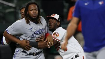 Guerrero Jr. y Teoscar Hernández, reaccionaron notablemente molestos ante “provocaciones” de Baker, teniendo que ser detenidos a la fuerza por Jorge Mateo, en momentos en el que se dirigían a “enfrentar” al lanzador.