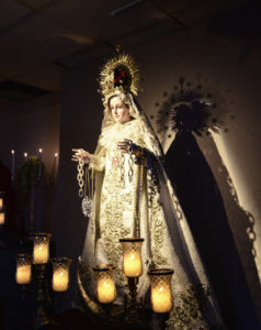 Entre las piezas más relevantes de la exposición figuran cuadros, esculturas y orfebrerías de diversos formatos y materiales, como son representaciones de las vírgenes de Fátima y de la Macarena, adquiridas en Portugal y España; y de Nuestra Señora de Las Mercedes.